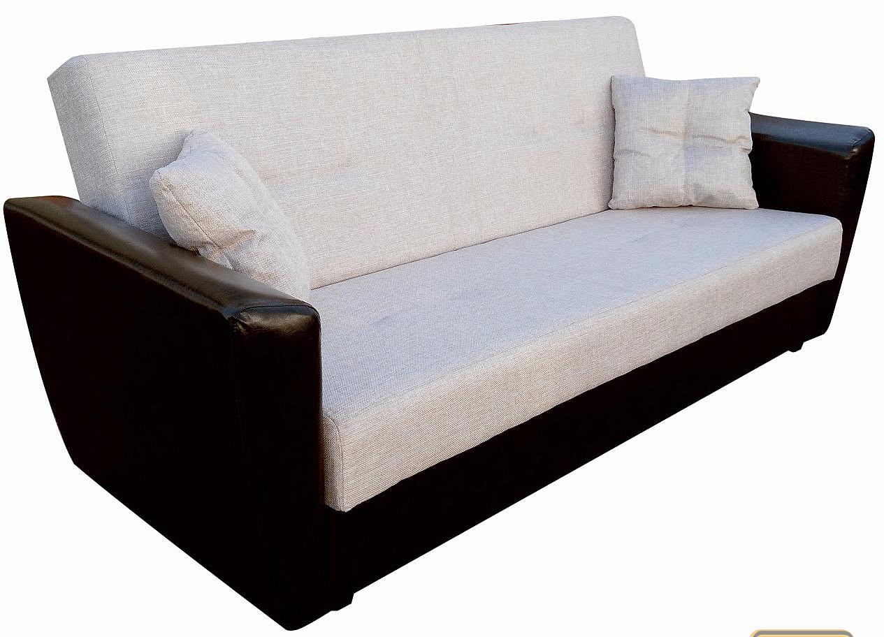 КнижкаОчень популярная модель механизма, которая позволяет совмещать диван с кроватью. Принцип работы прост – поднимаем сидение, при этом открывается бельевой ящик, и опускаем спинку в нижнее положение. Чтобы собрать кровать, нужно только: поднять сиденье вверх до щелчка, придавить его, и спинка автоматически поднимется вверх. Диван принял изначальное положение. Для подобного механизма необходим зазор со стеной в 10-15 см.